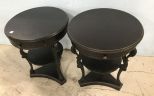 Pair of Biedermier Style Black Lamp Tables, carved swans, two tier, single drawers, solid pieces, 26"h., 21"w. Pair of Biedermier Style Black Lamp Tables, carved swans, two tier, single drawers, solid pieces, 26"h., 21"w.