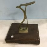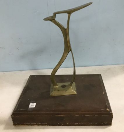 Vintage Brass Shoe Shine Stand with Wood Base, base has wear, 18"h., 16"w. Vintage Brass Shoe Shine Stand with Wood Base, base has wear, 18"h., 16"w.