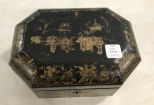 Japanese Black Lacquer Tea Caddie, two containers, one hinge needs repair, 4"h. 9"w. Japanese Black Lacquer Tea Caddie, two containers, one hinge needs repair, 4"h. 9"w.