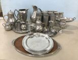 Collection of Pewter Serving Pieces, some have dents, pitchers, candle sticks, goblets, creamer, trays. Collection of Pewter Serving Pieces, some have dents, pitchers, candle sticks, goblets, creamer, trays.