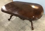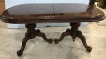Lexington Furniture Company Oval Dining Table, double pedestal, banded style top, has 3 leaves, light swirls and scuffs on top, 30"h., 65"long., 41"w. Lexington Furniture Company Oval Dining Table, double pedestal, banded style top, has 3 leaves, light swirls and scuffs on top, 30"h., 65"long., 41"w.