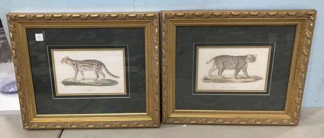 Two gold gilt cat prints, Marguai, Chat a tachetil, matted, framed, new frames, 16"h., 20"w. Two gold gilt cat prints, Marguai, Chat a tachetil, matted, framed, new frames, 16"h., 20"w.