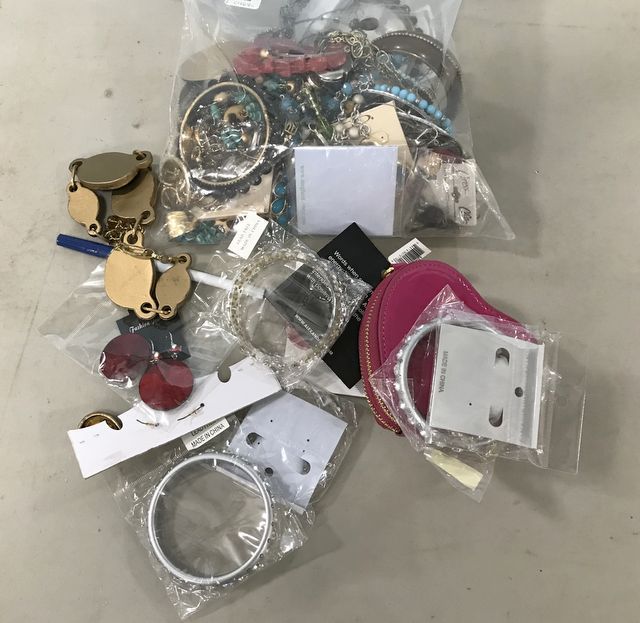 Grouping of Costume Jewelry Pieces, bag of assorted styled costume jewelry pieces, new, decor. Grouping of Costume Jewelry Pieces, bag of assorted styled costume jewelry pieces, new, decor.