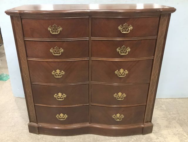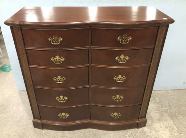 Cherry Chippendale Style Tall Chest, brass hardware, 10 drawers, light wear, 46"h., 48"w., 18"d. Cherry Chippendale Style Tall Chest, brass hardware, 10 drawers, light wear, 46"h., 48"w., 18"d.