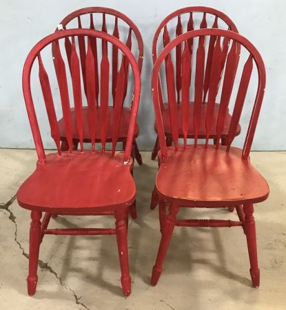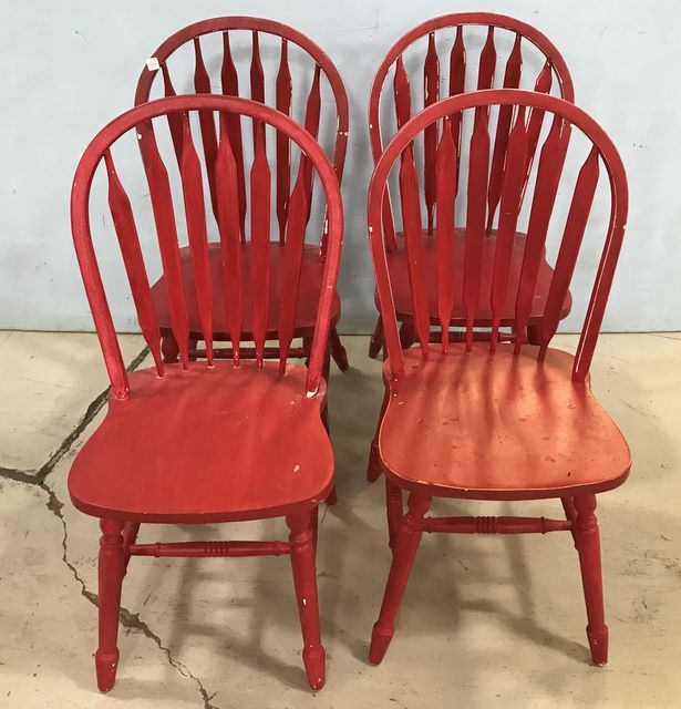 Four Modern Farm Style Windsor Chairs, red painted, no damage. Four Modern Farm Style Windsor Chairs, red painted, no damage.