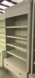 Display Adjustable Lighting Shelf Unit, with crest, single drawer, two piece, 93"h., 25"d., 48"w. Display Adjustable Lighting Shelf Unit, with crest, single drawer, two piece, 93"h., 25"d., 48"w.