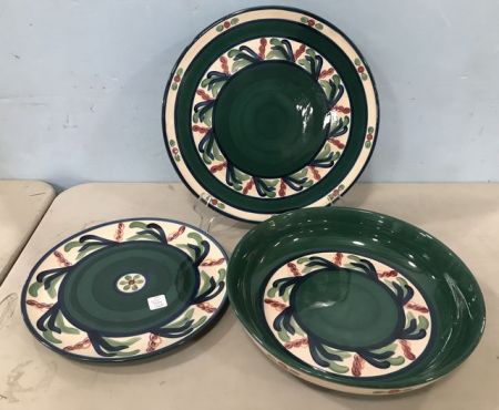 Gail Pittman Pottery Pieces, large platter 15"dia., medium platter, serving bowl. Gail Pittman Pottery Pieces, large platter 15"dia., medium platter, serving bowl.