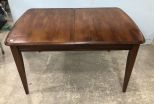 Modern Cherry Farm Style Dining Table, tampered legs, pull out leaf, good condition, 29"h., 53"w., 36"d. Modern Cherry Farm Style Dining Table, tampered legs, pull out leaf, good condition, 29"h., 53"w., 36"d.