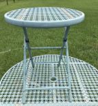 Small Metal Turquoise Patio Side Table, will fold up. Small Metal Turquoise Patio Side Table, will fold up.
