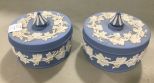 Two Wedgwood Jasperware Powder Boxes, good condition, 2"h., 5"dia. Two Wedgwood Jasperware Powder Boxes, good condition, 2"h., 5"dia.