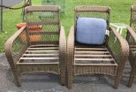 Two Rattan Woven Arm Chair, no cushions. Two Rattan Woven Arm Chair, no cushions.