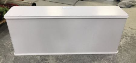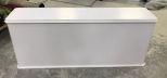 White Painted White Wall Pedestal, with power outlet, 24"h., 59"w., 13"d. White Painted White Wall Pedestal, with power outlet, 24"h., 59"w., 13"d.