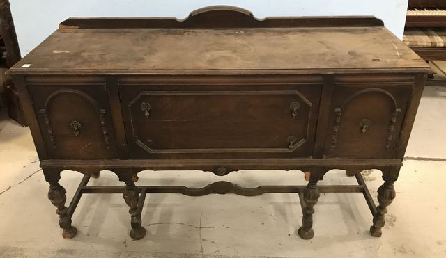 Colonial Revival Sideboard, walnut, needs restoration, 42"h., 66"w., 21"d. Colonial Revival Sideboard, walnut, needs restoration, 42"h., 66"w., 21"d.