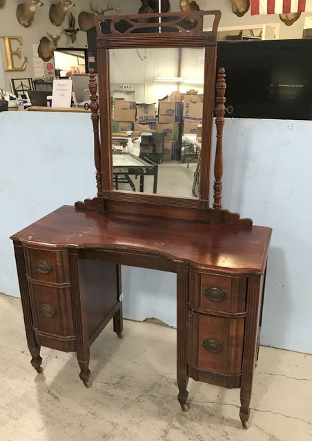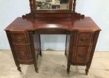 Mid 20th Century Duncan Phyfe Vanity, four drawers, on casters, has finish scratches and scuffs, 65"h., 43"w., 18"d. Mid 20th Century Duncan Phyfe Vanity, four drawers, on casters, has finish scratches and scuffs, 65"h., 43"w., 18"d.