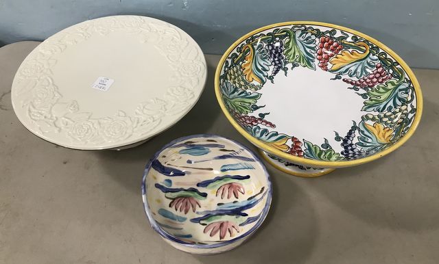 Royal Limited porcelain cake stand, Grazia Dervtig, made in Italy compote centerpiece, signed hand painted salad bowl. Royal Limited porcelain cake stand, Grazia Dervtig, made in Italy compote centerpiece, signed hand painted salad bowl.