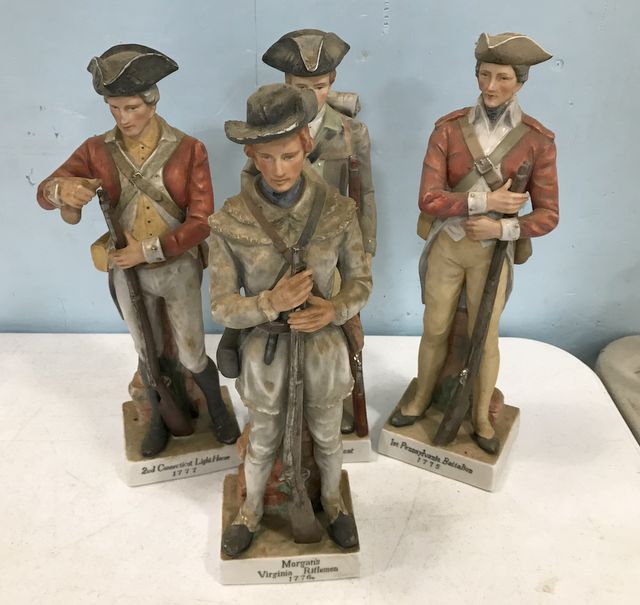 Set of 4 Porcelain Revolutionary Soldier Figurines, need cleaning, 12"h. Set of 4 Porcelain Revolutionary Soldier Figurines, need cleaning, 12"h.