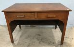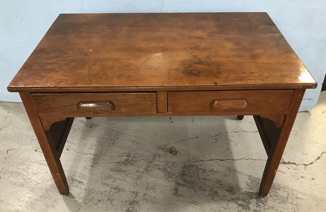 Vintage Two Drawer Writing Desk, has scuffs, few scratches, sturdy, 30"h., 46"w., 28"d. Vintage Two Drawer Writing Desk, has scuffs, few scratches, sturdy, 30"h., 46"w., 28"d.