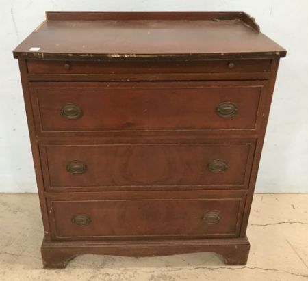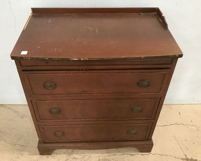 Duncan Phyfe Bachelor's Chest, three drawers, missing side top trim, has finish issues, 33"h., 30"w., 18"d. Duncan Phyfe Bachelor's Chest, three drawers, missing side top trim, has finish issues, 33"h., 30"w., 18"d.