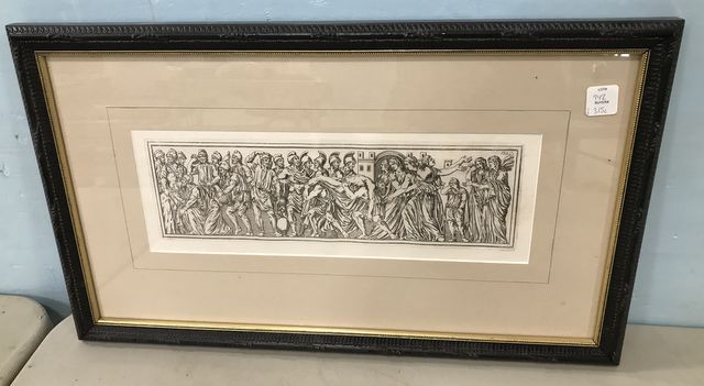 Grecian Style Engraving Print, matted, framed, 14"h., 22"w. Grecian Style Engraving Print, matted, framed, 14"h., 22"w.