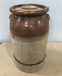 Two Tone Brown Early Stoneware Churn, used condition, missing rod, 18". Two Tone Brown Early Stoneware Churn, used condition, missing rod, 18".