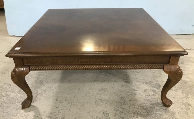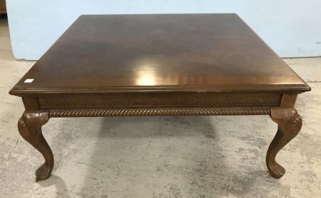 Queen Anne Style Modern Square Coffee Table, has scratches and scuffs, 16"h., 38"w. Queen Anne Style Modern Square Coffee Table, has scratches and scuffs, 16"h., 38"w.