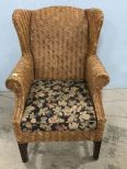 Rattan Wing Chair with Cushion, light worn areas on rattan. Rattan Wing Chair with Cushion, light worn areas on rattan.