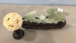 Faux Jade Carved Fish on stand 10"w. and Resin Carved Ball on Stand Faux Jade Carved Fish on stand 10"w. and Resin Carved Ball on Stand