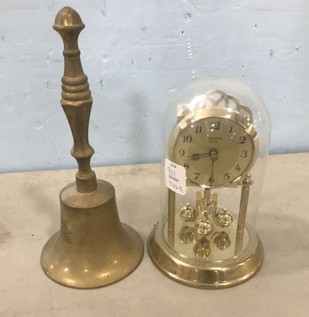 Buchere Anniversary Clock, battery operated, 7"h. and Vintage Dinner Bell Buchere Anniversary Clock, battery operated, 7"h. and Vintage Dinner Bell