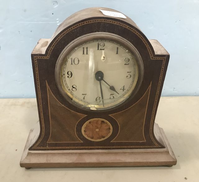 Vintage mantel clock, face is cracked, needs work, 8"h. Vintage mantel clock, face is cracked, needs work, 8"h.