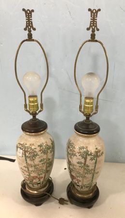 942 Pair of Satsuma Style Bamboo Design Table Lamps
