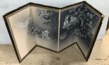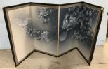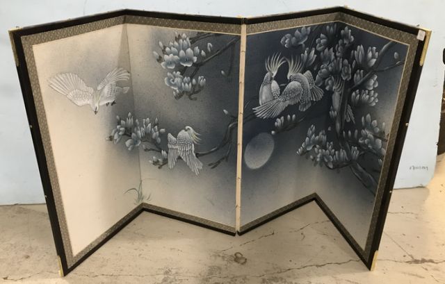 Oriental Style Four Panel Wall Screen, paper, birds, brass corners, each panel is 35"h., 17"w. Oriental Style Four Panel Wall Screen, paper, birds, brass corners, each panel is 35"h., 17"w.