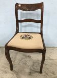 Carved Mahogany Side Chair, needlepoint seat, 31"h. Carved Mahogany Side Chair, needlepoint seat, 31"h.