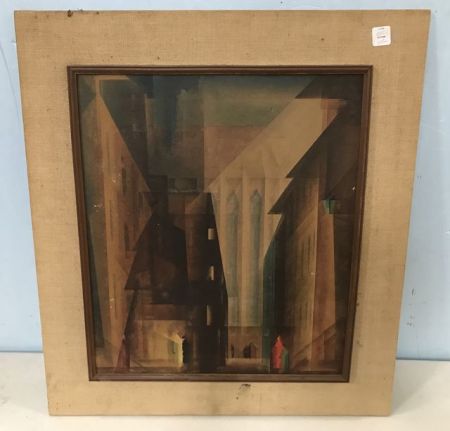 Abstract of Church & Monks Print, has some damage spots, 27"h., 23"w. Abstract of Church & Monks Print, has some damage spots, 27"h., 23"w.