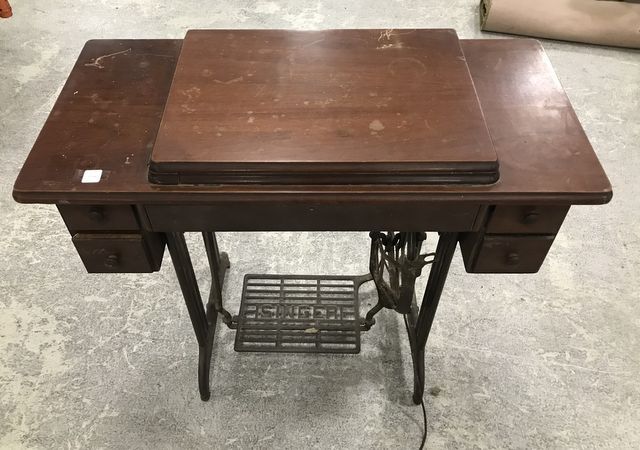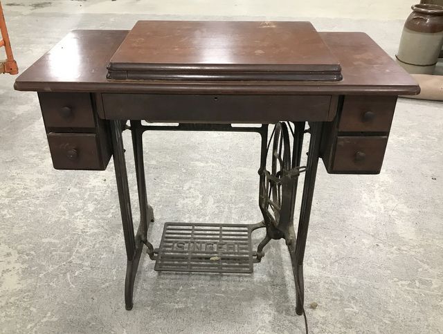 Oak Antique Treadle Sewing Machine, singer sewing machine, 29"h., 34"w., 16"d. Oak Antique Treadle Sewing Machine, singer sewing machine, 29"h., 34"w., 16"d.