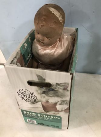 Antique play doll, out of Louisiana, is damaged, and worn. Antique play doll, out of Louisiana, is damaged, and worn.