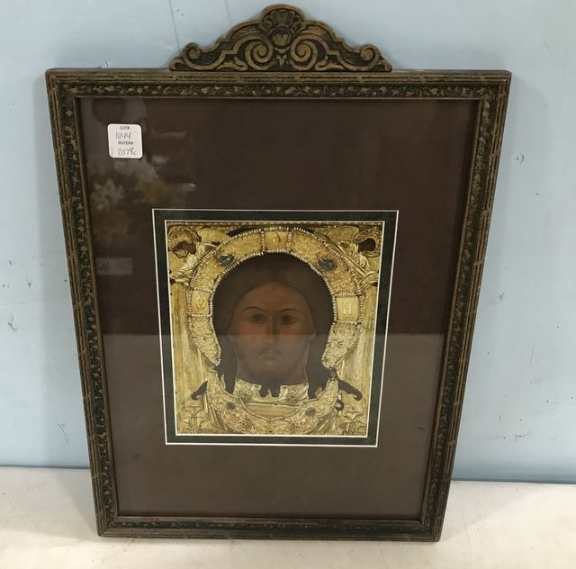 Vintage Portrait of Jesus Print, antique framed, matted, 19"h., 13"w. Vintage Portrait of Jesus Print, antique framed, matted, 19"h., 13"w.