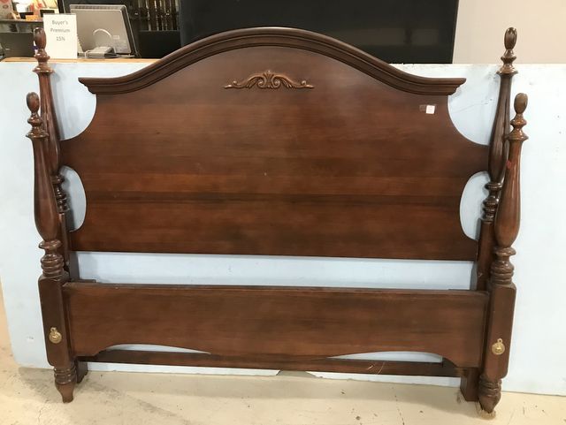 Modern Cherry Mini Post Queen/Full Bed, with metal rails. Modern Cherry Mini Post Queen/Full Bed, with metal rails.
