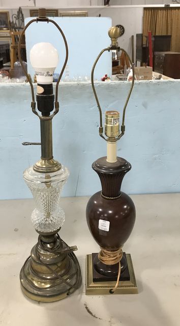 Vintage Brass Table Lamp, and Ceramic Urn Lamp, 26"h. Vintage Brass Table Lamp, and Ceramic Urn Lamp, 26"h.