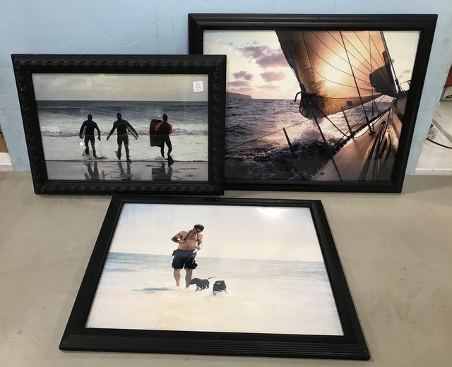Three Sailing and Beach Photographs, framed. Three Sailing and Beach Photographs, framed.