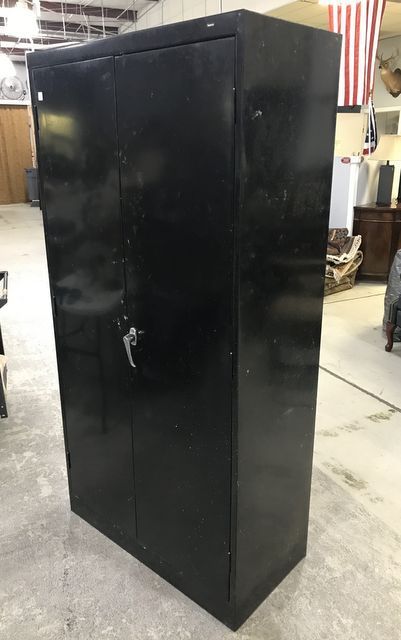 Black Two Door Metal Storage Cabinet, used condition, 72"h., 36"w. Black Two Door Metal Storage Cabinet, used condition, 72"h., 36"w.