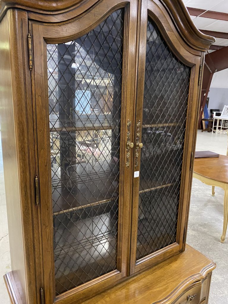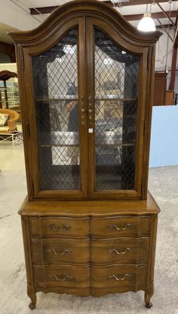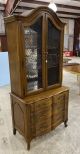 Davis Cabinet Co. Commode base with cabinet top, walnut, mirrored back, double door with two interior shelves, good condition, 80"h., 37"w., 20"d. Davis Cabinet Co. Commode base with cabinet top, walnut, mirrored back, double door with two interior shelves, good condition, 80"h., 37"w., 20"d.