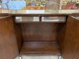 John Richards Mirrored Buffet, Cherry frame with mirrored doors and top, two interior drawers, good condition, 43"h., 78"w., 18"d. John Richards Mirrored Buffet, Cherry frame with mirrored doors and top, two interior drawers, good condition, 43"h., 78"w., 18"d.