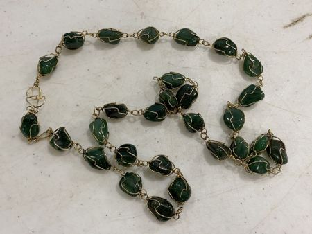 Vintage Presumed To Jade & Gold Wire Necklace, 32" length. Vintage Presumed To Jade & Gold Wire Necklace, 32" length.