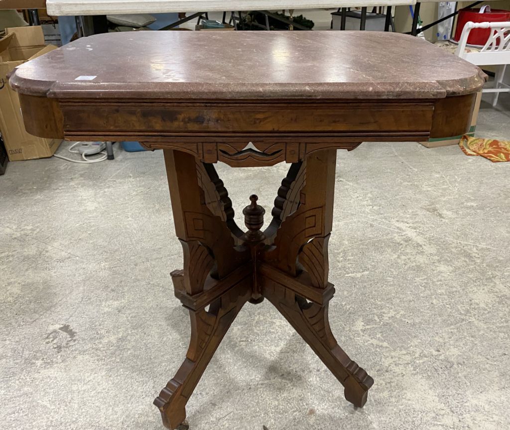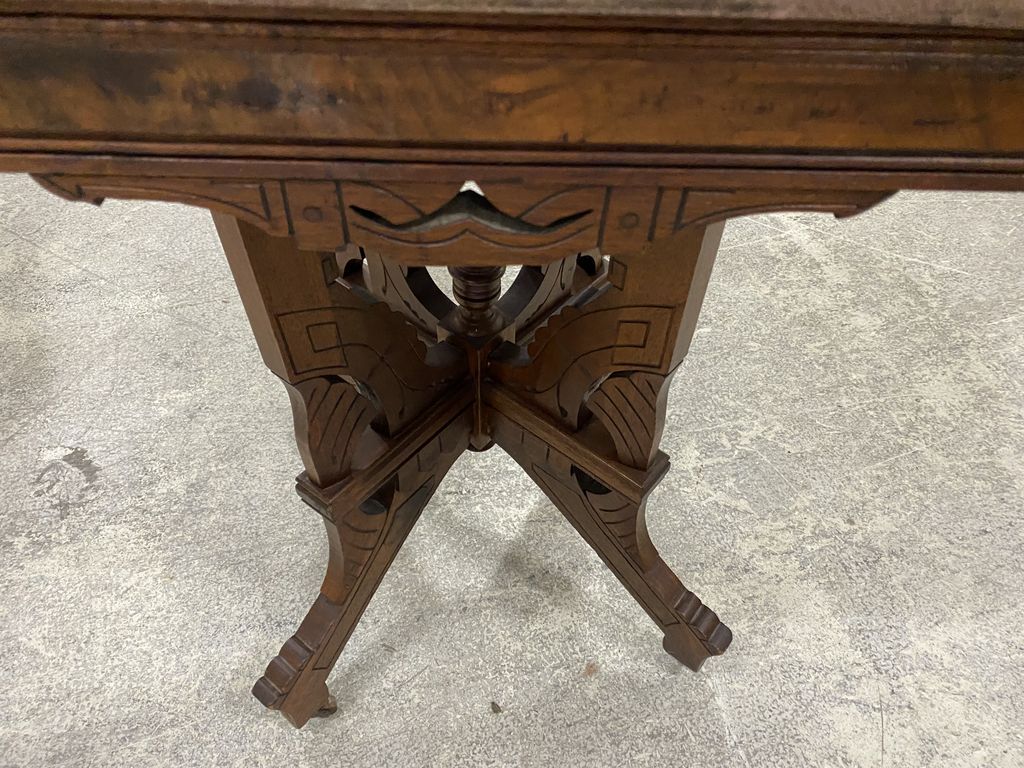 Antique Victorian Marble Top Lamp Table, gray marble, walnut base, on casters, light wear, 30"h., 30"w., 22"d. Antique Victorian Marble Top Lamp Table, gray marble, walnut base, on casters, light wear, 30"h., 30"w., 22"d.
