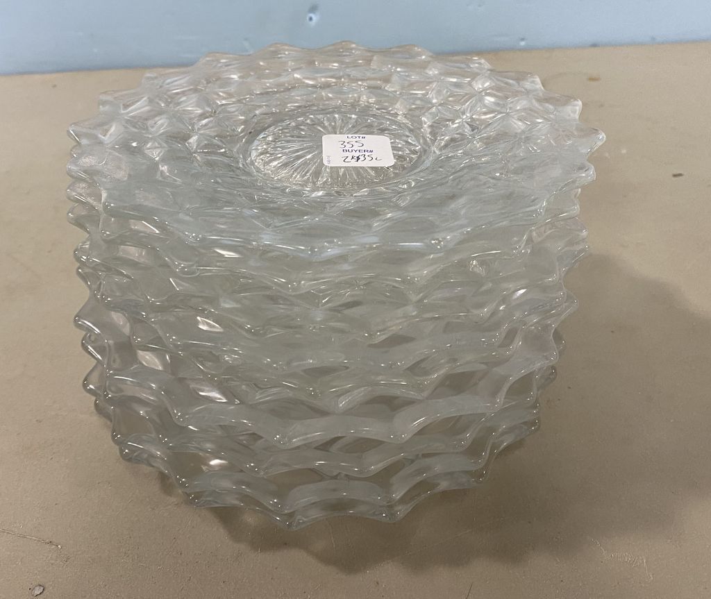 9 Fostoria American Clear Plates, 7 1/2"dia. 9 Fostoria American Clear Plates, 7 1/2"dia.
