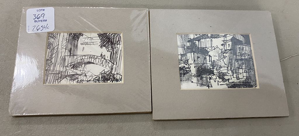 Two John Gaddis Small Pen Art Studies, signed, 4"h., 4 1/2"w. Two John Gaddis Small Pen Art Studies, signed, 4"h., 4 1/2"w.