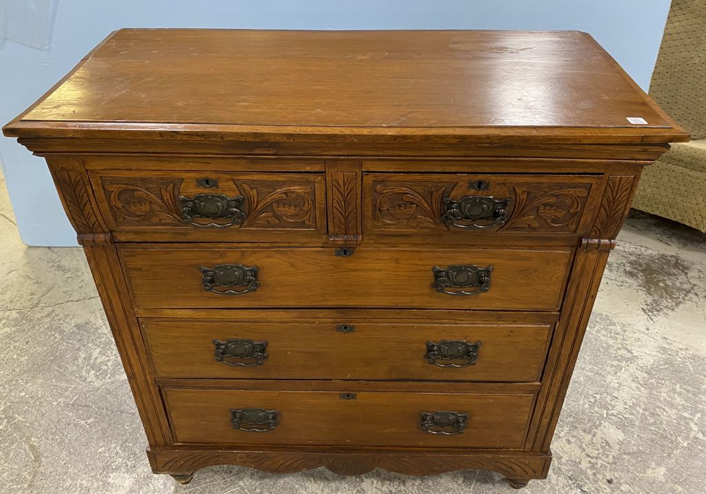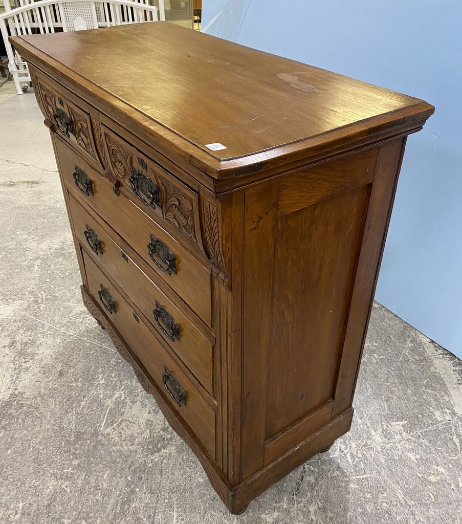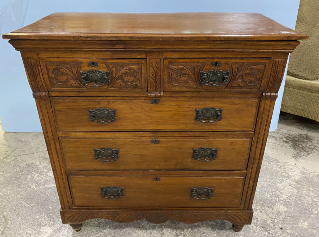 Antique Welch Style Chest of Drawers, four drawers, walnut, good condition, carved top drawers, 44"h., 42"w., 20"d. Antique Welch Style Chest of Drawers, four drawers, walnut, good condition, carved top drawers, 44"h., 42"w., 20"d.