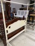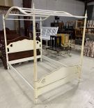 French Provincial Canopy Full Bed, four poster with canopy, factory painted white, good condition. French Provincial Canopy Full Bed, four poster with canopy, factory painted white, good condition.
