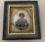 Frame Antique Tin Type, portrait of lady, aged condition, 5"h., 4"w. Frame Antique Tin Type, portrait of lady, aged condition, 5"h., 4"w.