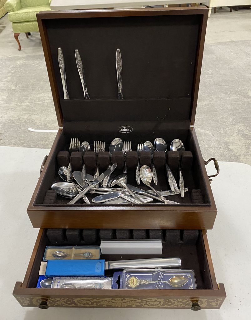 Superior Stainless Flatware Set, includes box and collection of demitasse spoons. Superior Stainless Flatware Set, includes box and collection of demitasse spoons.